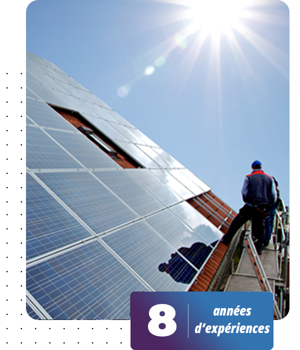 Fondée en 2014, l’entreprise Sol'R Bati, créée et dirigée par Hafid, dispose d’une expérience de plus de 8 ans dans le domaine du panneaux photovoltaïque. Notre entreprise repose sur le savoir-faire et les compétences de notre équipe dirigeante et de nos équipes sur le terrain.